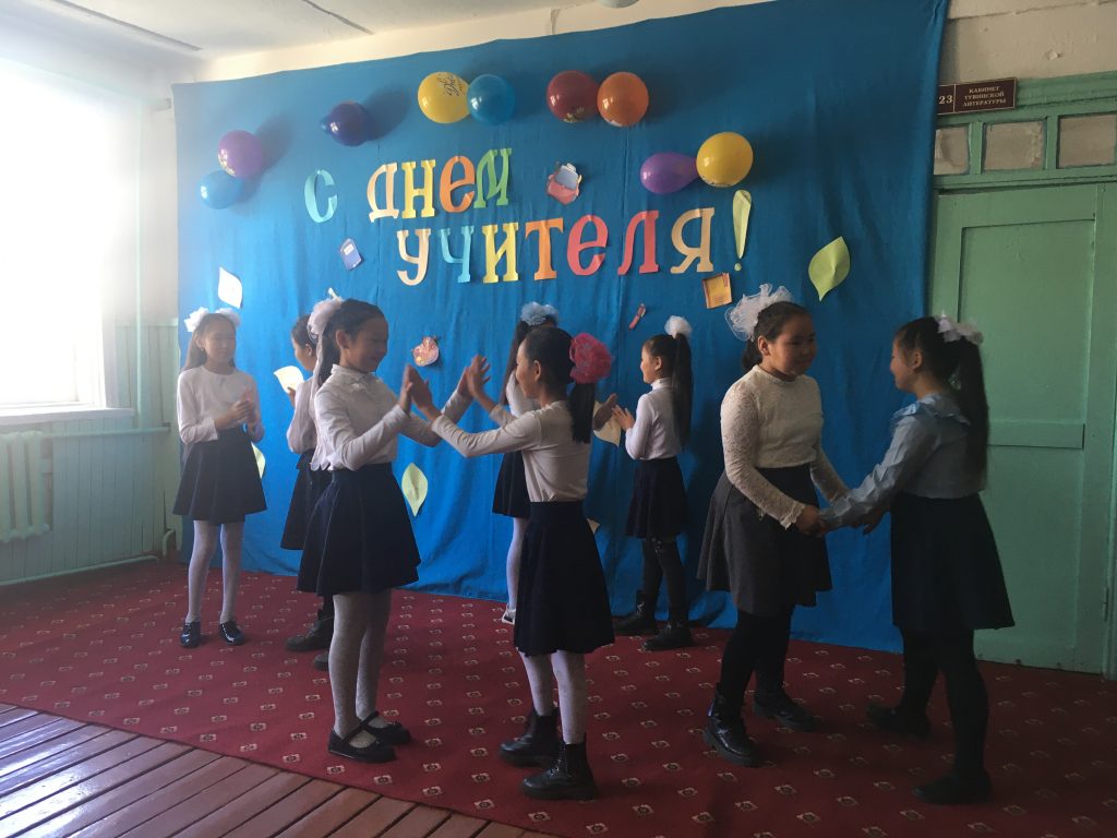 5 октября в стране отмечается праздник – День учителя. В школе шла подготовка к этому событию. Ответственным за это мероприятие были 10-11 классы (Кл. руководитель Дембирел А.А.). Заранее был подготовлен сценарий праздника, распределены роли. Были изготовлены своими руками и разостланы пригласительные для учителей.