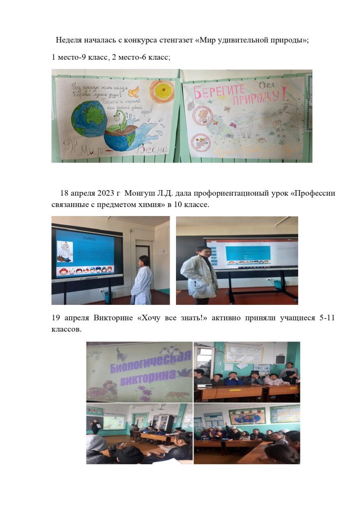 Анализ предметной недели естественных наук В МБУ Ийской СОШ