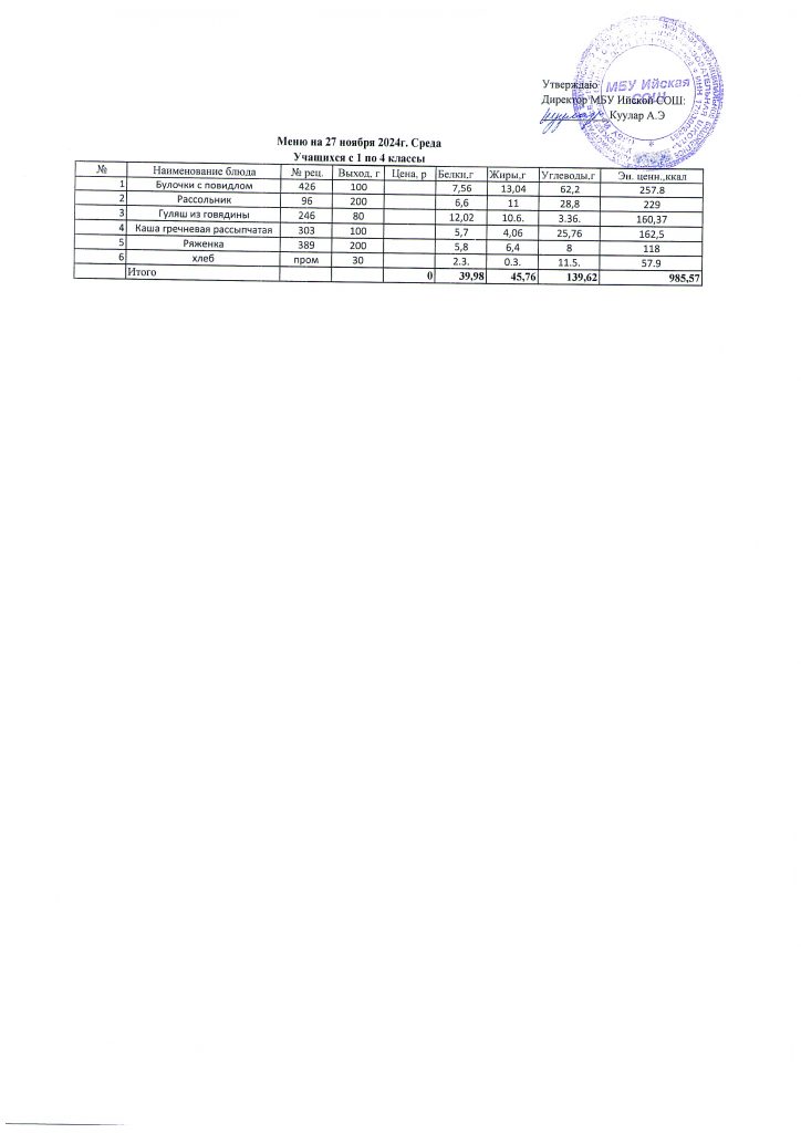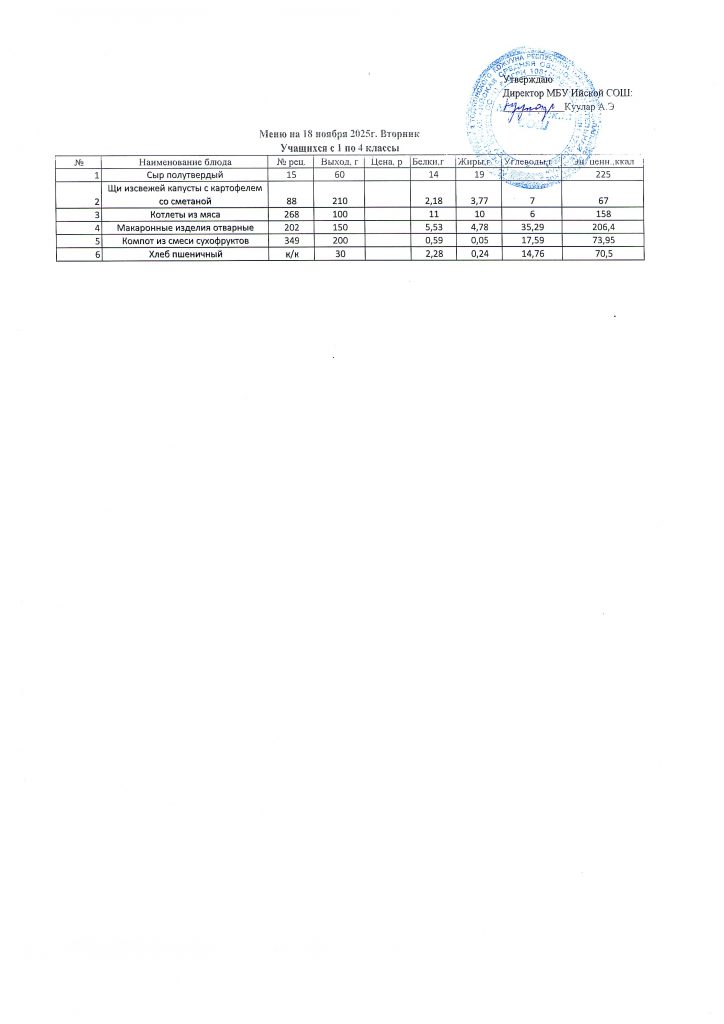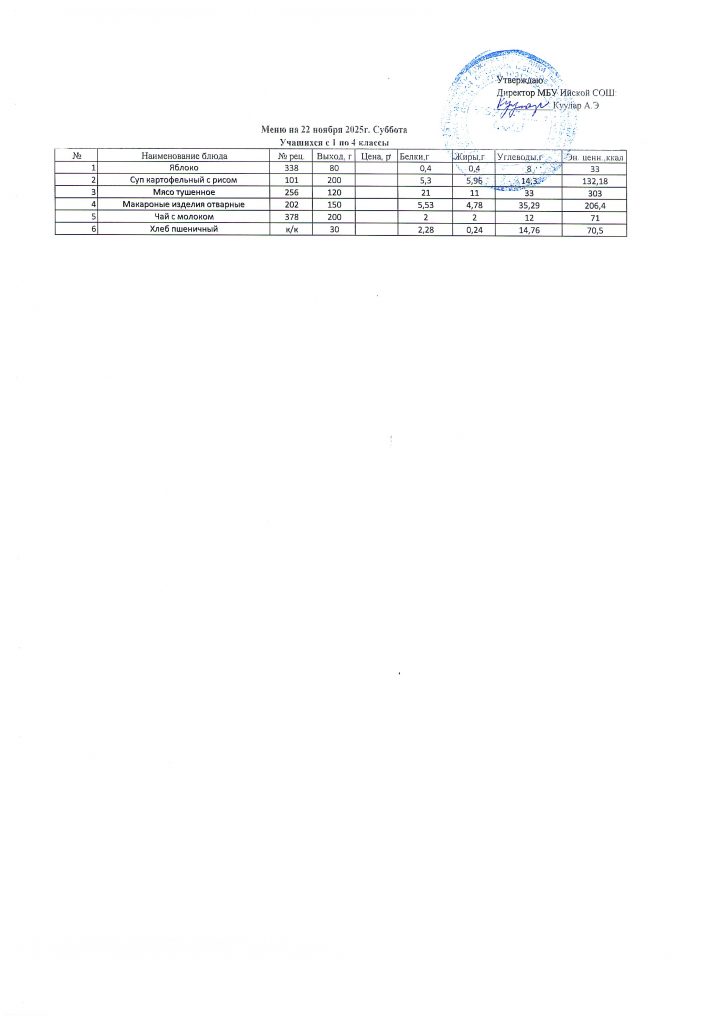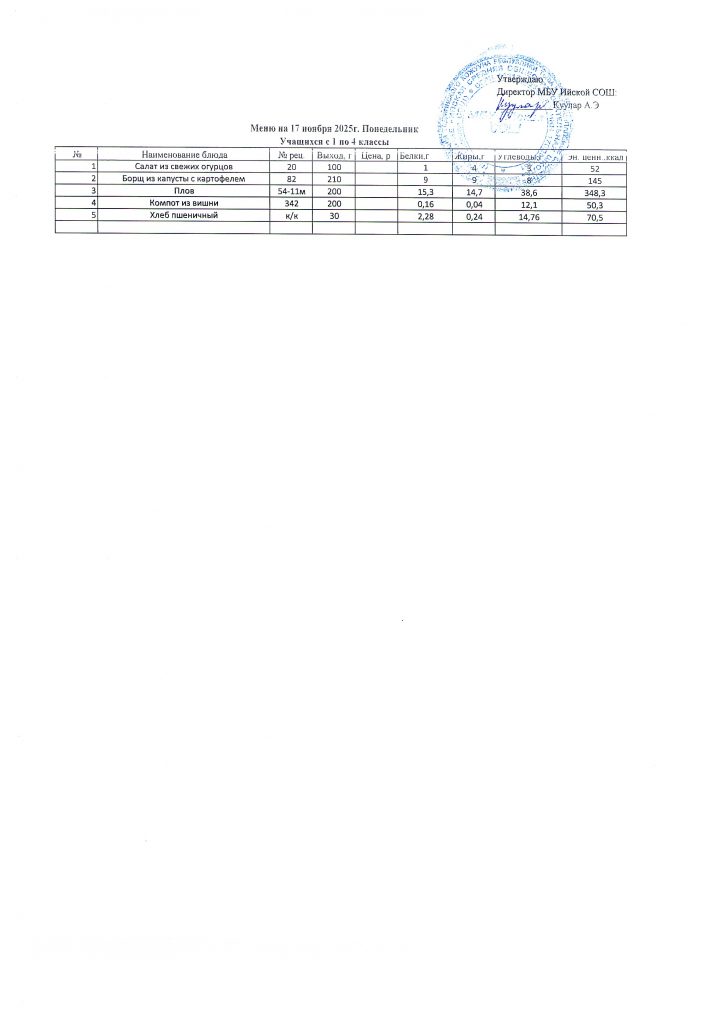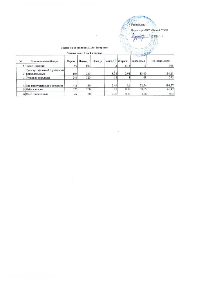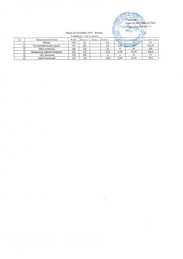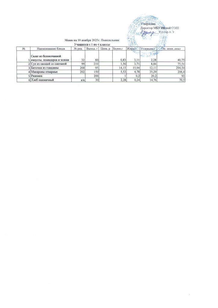 Меню (ноябрь 2025г).