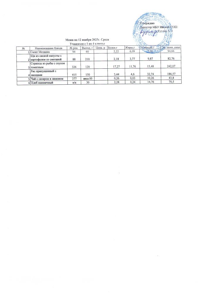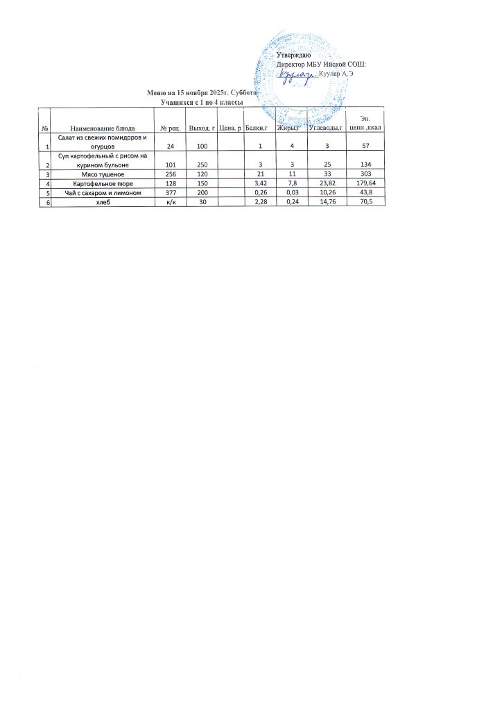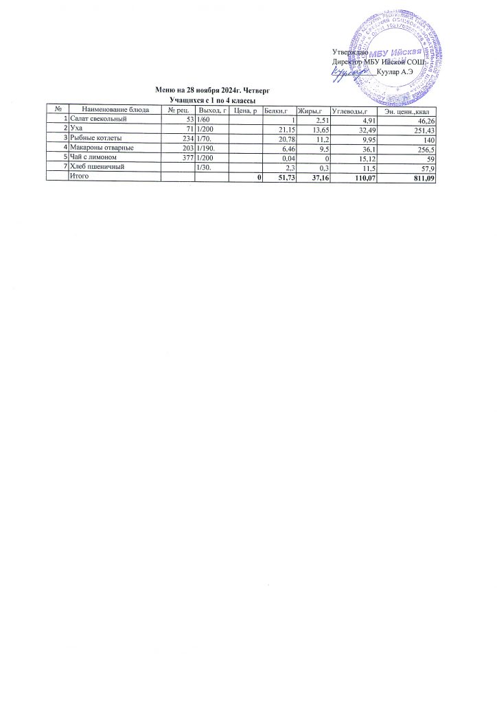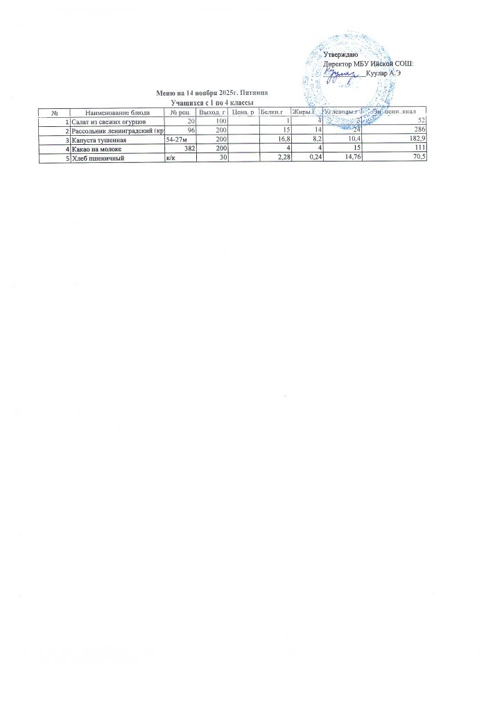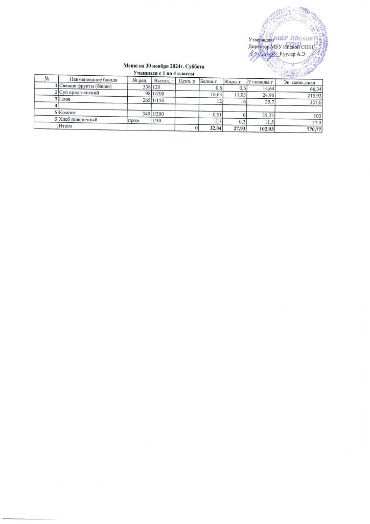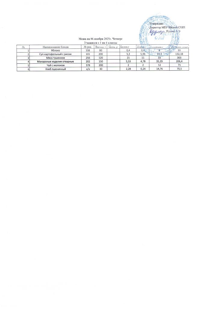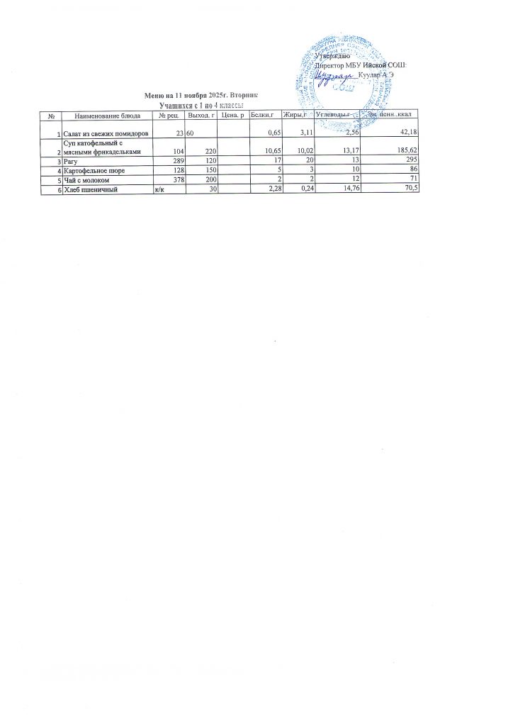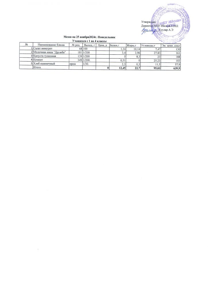 Меню (ноябрь 2025г).