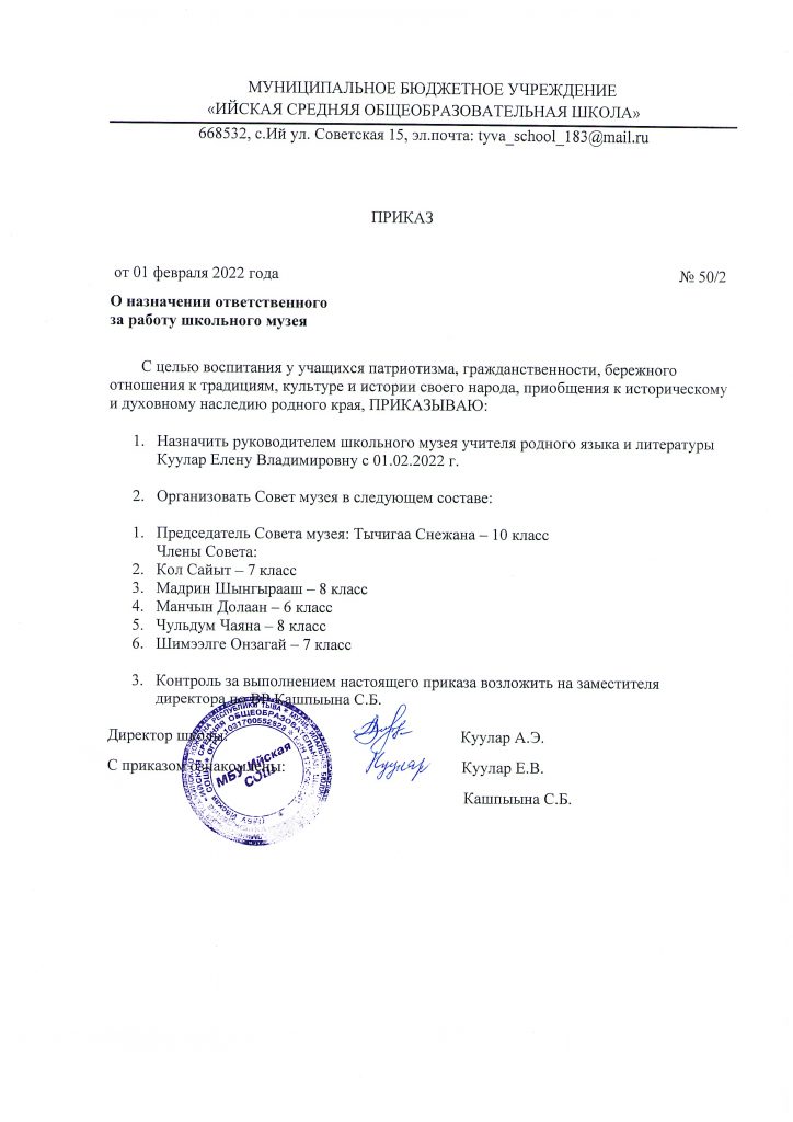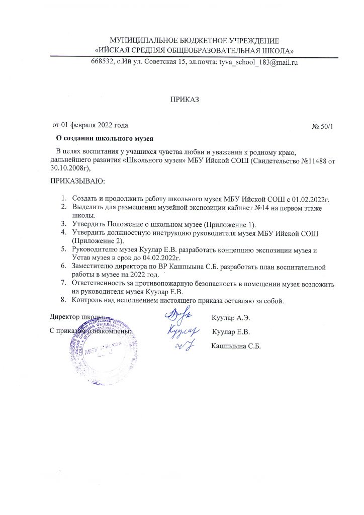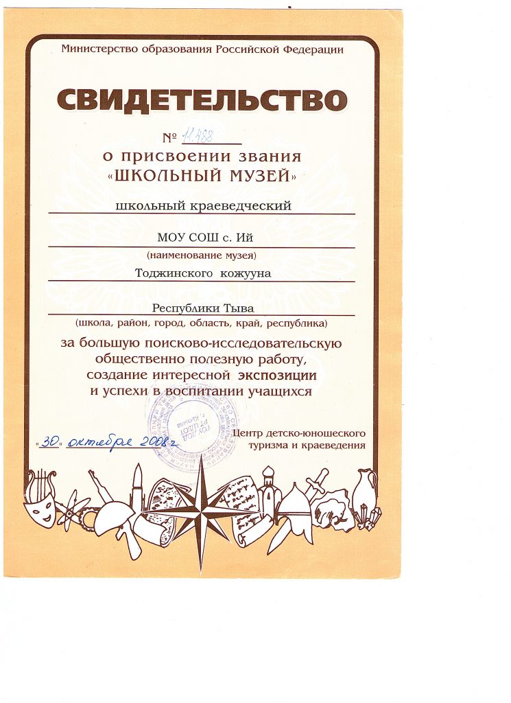 Школьный краеведческий музей Мероприятия по реализации программыСкачать Поснительская запискаСкачать Запрос по музеям образовательных учреждений по Республике ТываСкачать ХарактеристикаСкачать Учетная карточка музеяСкачать