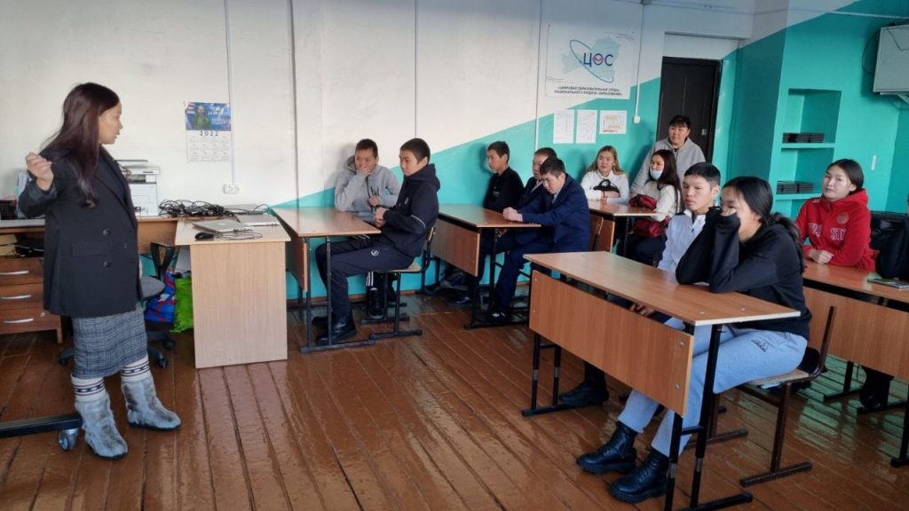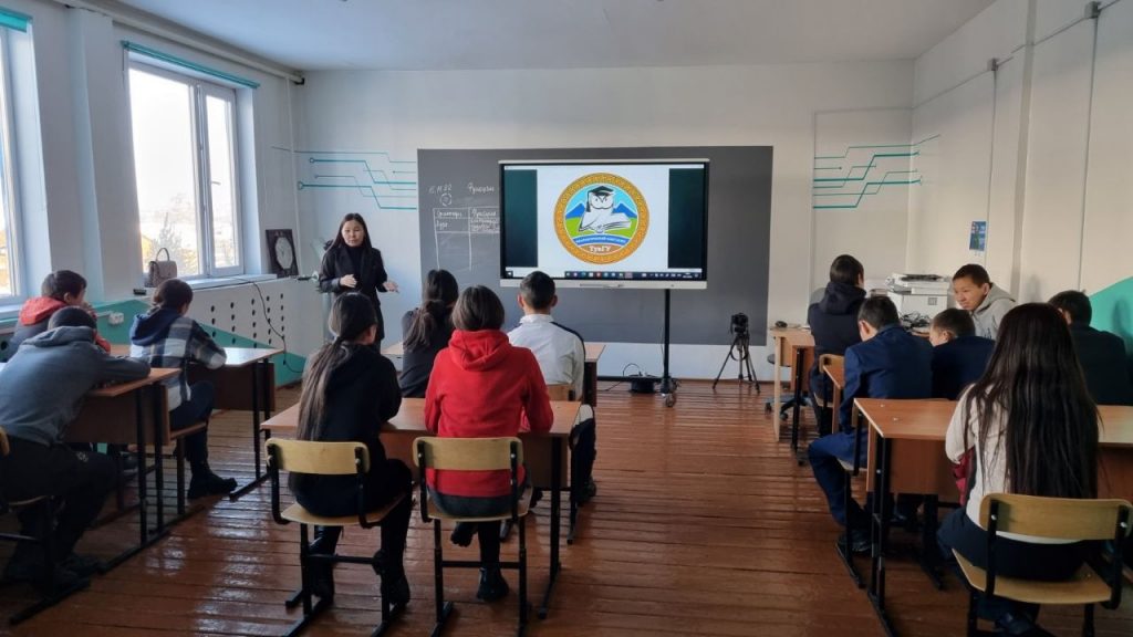 В рамках реализации плана профориентационной работы филологического факультета Тувинского государственного университета на 2022-2023 учебный 30 ноября 2022 года аспирант кафедры тувинской филологии и общего языкознания Мочурга Хомушку провела встречу в МБОУ Ийской средней общеобразовательной школе Тоджинского района РТ.